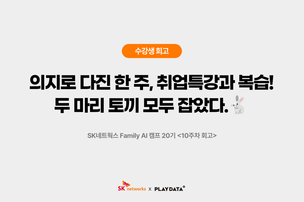 SK네트웍스 Family AI캠프 수강생들의 스토리와 후기를 확인해보세요.